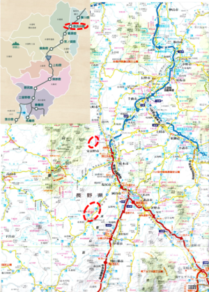 自宅から約480km(高速道路経由)、奈良井宿は塩尻市(旧楢川村)の奈良井川上流にあり、図1に示すとおり、中山道木曽路十一宿の江戸側から2番目で、11宿の中では標高が最も高い(標高900m超)ところにあります。